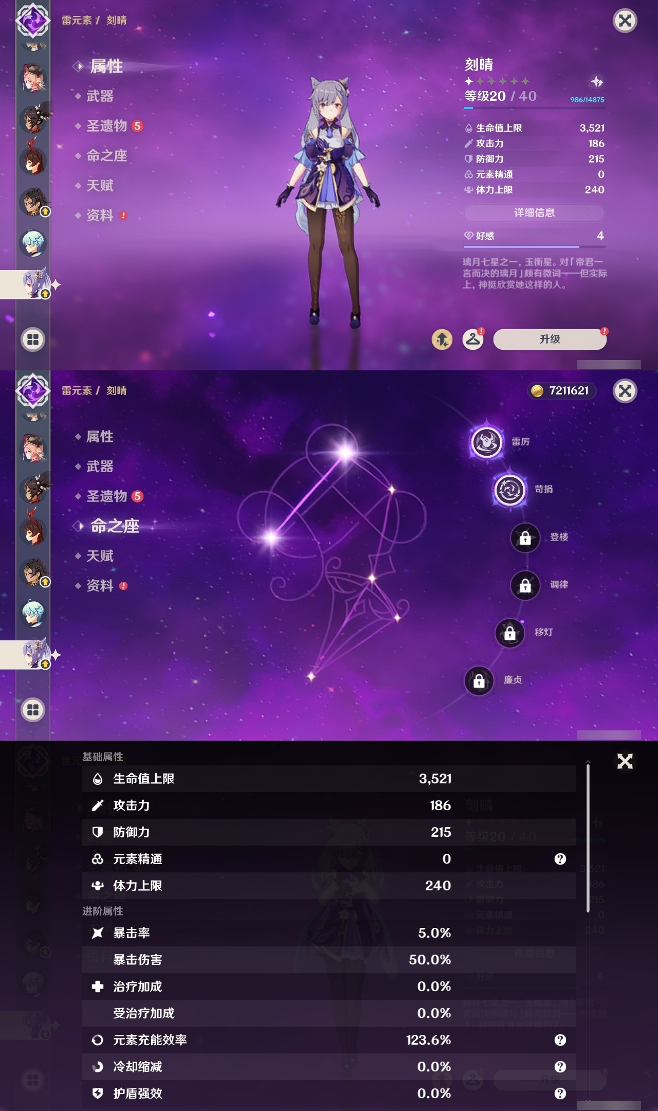 官服 天空岛 【原神】冒险等级:59,男主,五星数量:28,绑定情况:手机号|TapTap__五星角色:夜兰 * 3命|八重神子 * 3命|希诺宁 * 2命|七七 * 2命|刻晴 * 2命|芙
