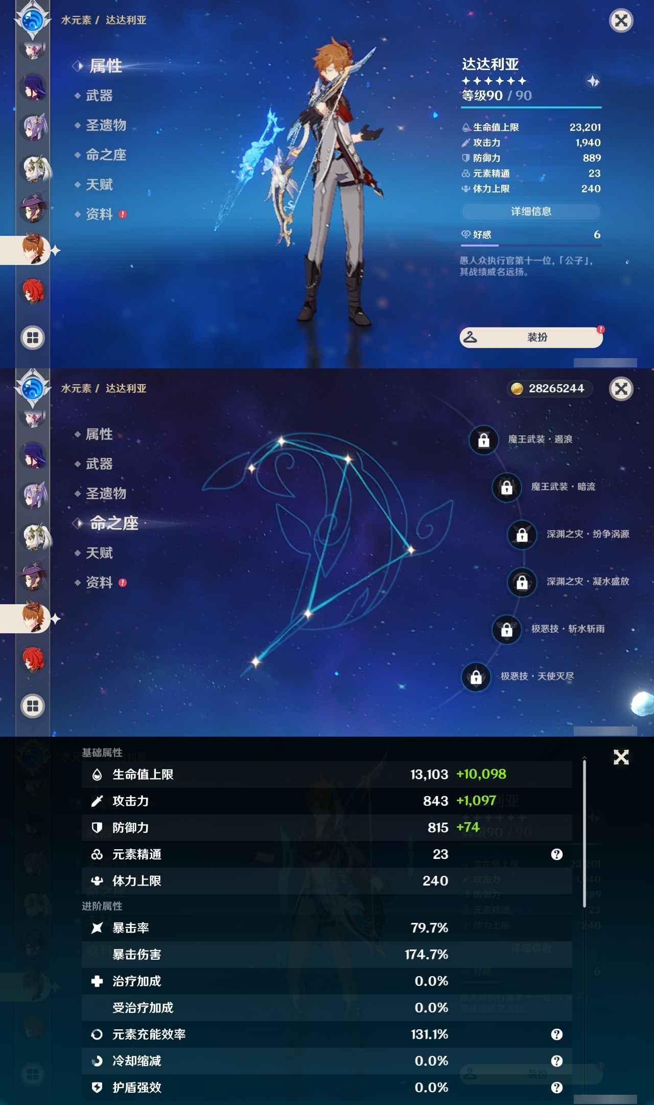 官服 天空岛 【原神】【TMLWH0316】冒险等级:59,男主,五星数量:24,五星角色:琴 * 3命|刻晴 * 2命|那维莱特 * 1命|莫娜 * 1命|迪卢克 * 1命|七七 * 1命|枫原万叶|夜兰|流浪者
