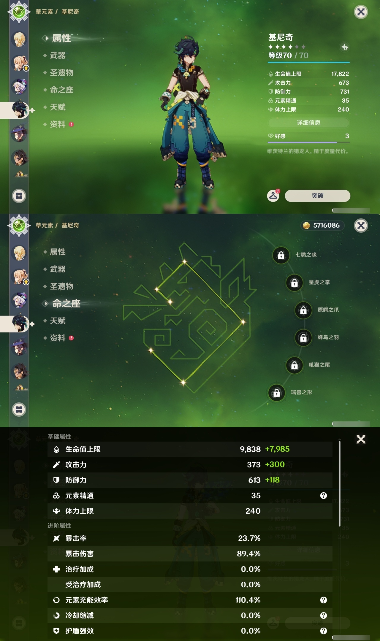 官服 天空岛 【原神】冒险等级:57,女主,五星数量:24,绑定情况:手机号__五星角色:提纳里 * 2命|玛拉妮 * 1命|琴 * 1命|七七 * 1命|迪希雅 * 1命|那维莱特|芙宁娜