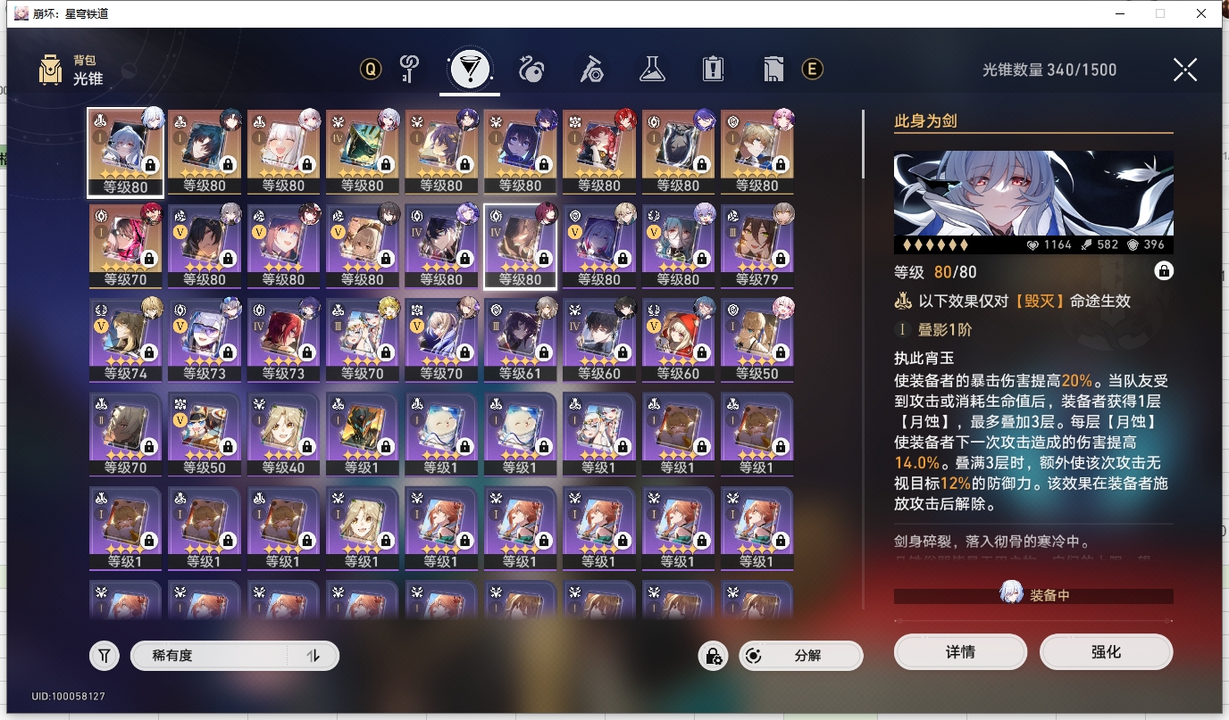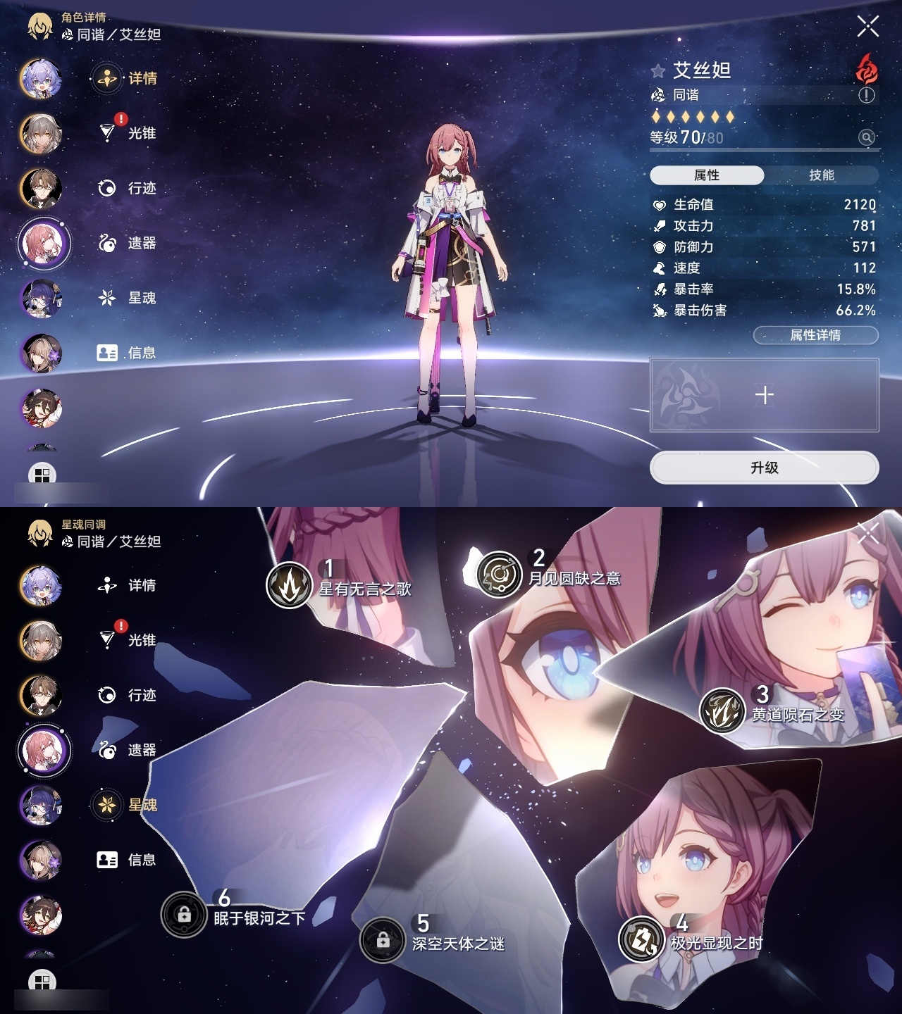 【崩坏·星穹铁道】【BHLSB351】冒险等级:70,女主,五星数量:32,五星角色:克拉拉 * 4命|希儿 * 2命|黄泉 * 1命|黑天鹅 * 1命|镜流 * 1命|白露 * 1命|瓦尔特 * 1命|彦卿 * 1命|姬子|砂金|银枝|托帕&账账|阮·梅|卡芙卡|刃|布洛妮娅|花火|符玄|银狼|真理医生|罗刹|杰帕德__五星光锥:星海巡航 * 4精|此身为剑|到不了的彼岸|无可取代的东西|纯粹思维的洗礼|于夜色中|银河铁道之夜|行于流逝的岸|制胜的瞬间|以世界之名__绑定情况:手机号,【邮箱未绑定】,(可提供替换信息,大手机可换绑)