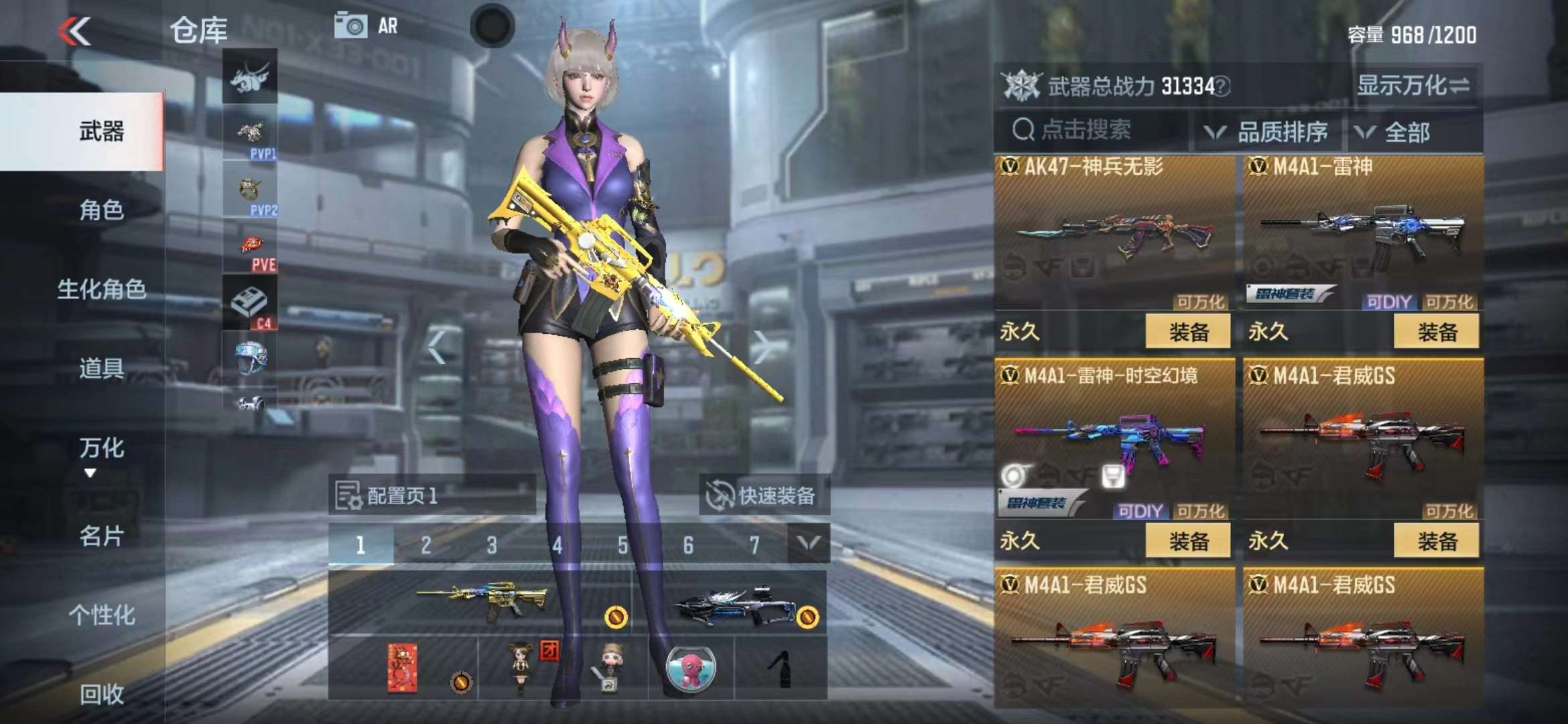 46V-100级|王者之魄|81式阿波罗 | QCW05-变形金刚 大黄蜂 | AK47-无影 暗月 | AK47-樱斗士-二觉 | AK47-雷麒麟 | M4A1-雷神 时空幻境 | AN94-四凶觉醒 | 巴雷特-毁灭 寒霜 | 加特林-堡垒 | 双持斯泰尔-天使 | 地狱火 | 沙鹰-修罗 能量核心 | 角色 | 龙妹 | 葵 | 五号兵器N22 | 蜀雪 | 斯薇特 | 木兰 | 复仇者 | 音效卡 | 现代战场 |