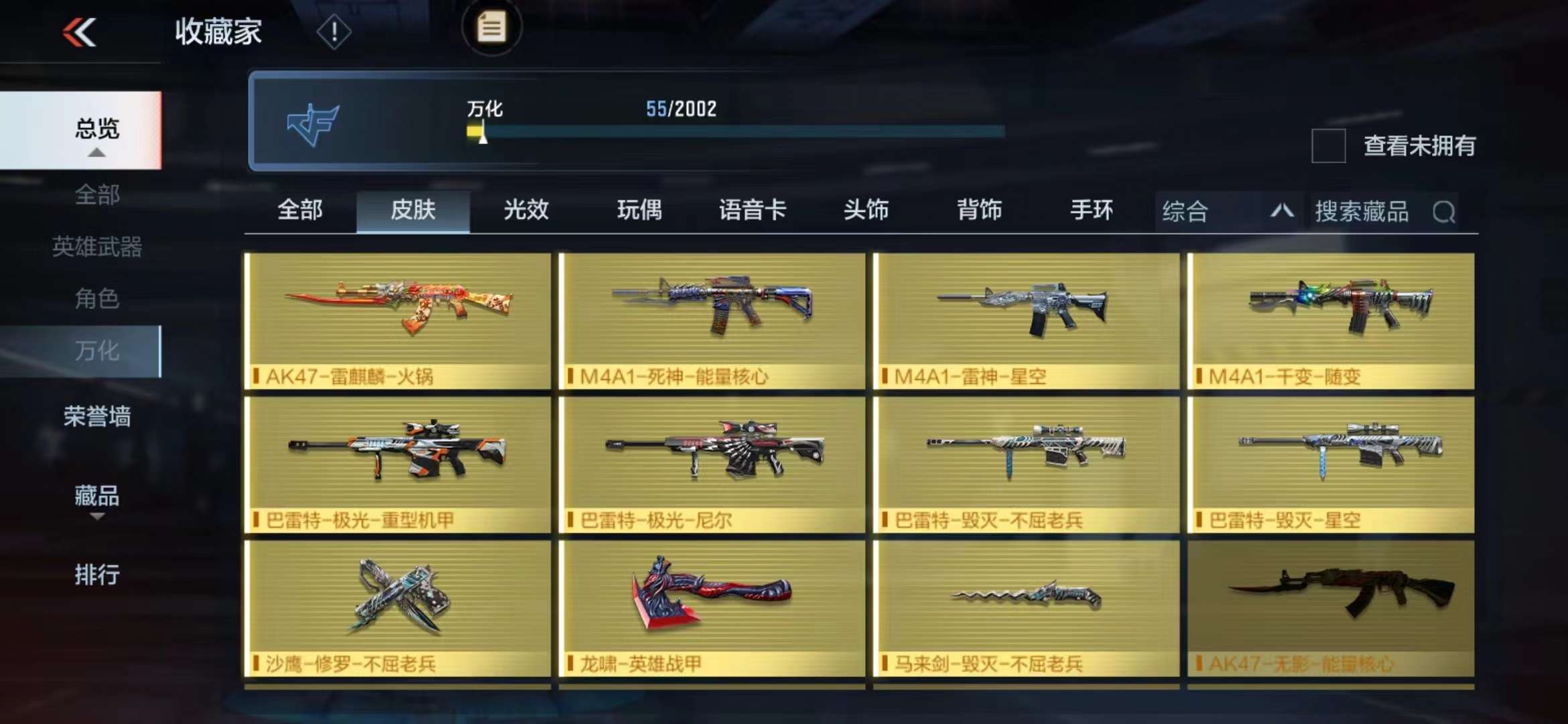 82V-103级| 王者之烈 | 81式 阿波罗 | AK47-樱斗士 一觉 | AK47-沙漠郡主 二觉 | AK47-雷麒麟 火锅 | AK47-心动次元 | AK47-血武士 | AK47-无影 | M4A1-雷神 星空 | M4A1-死神 能量核心 | M4A1-海骑士 | M4A1-千变 随变 | 巴雷特-毁灭 不屈老兵 | AWM-裁决 | 双持斯泰尔-天使 | 地狱烈炎 | 沙鹰-修罗 不屈老兵 | USP-神罚 | 龙啸-英雄战甲 | 神罚战斧 | 角色 | 龙妹 | 奥妹 | 孙悟空 | 麻雀 | 蜀雪 | 幻影 | 音效卡 | 现代战场 |