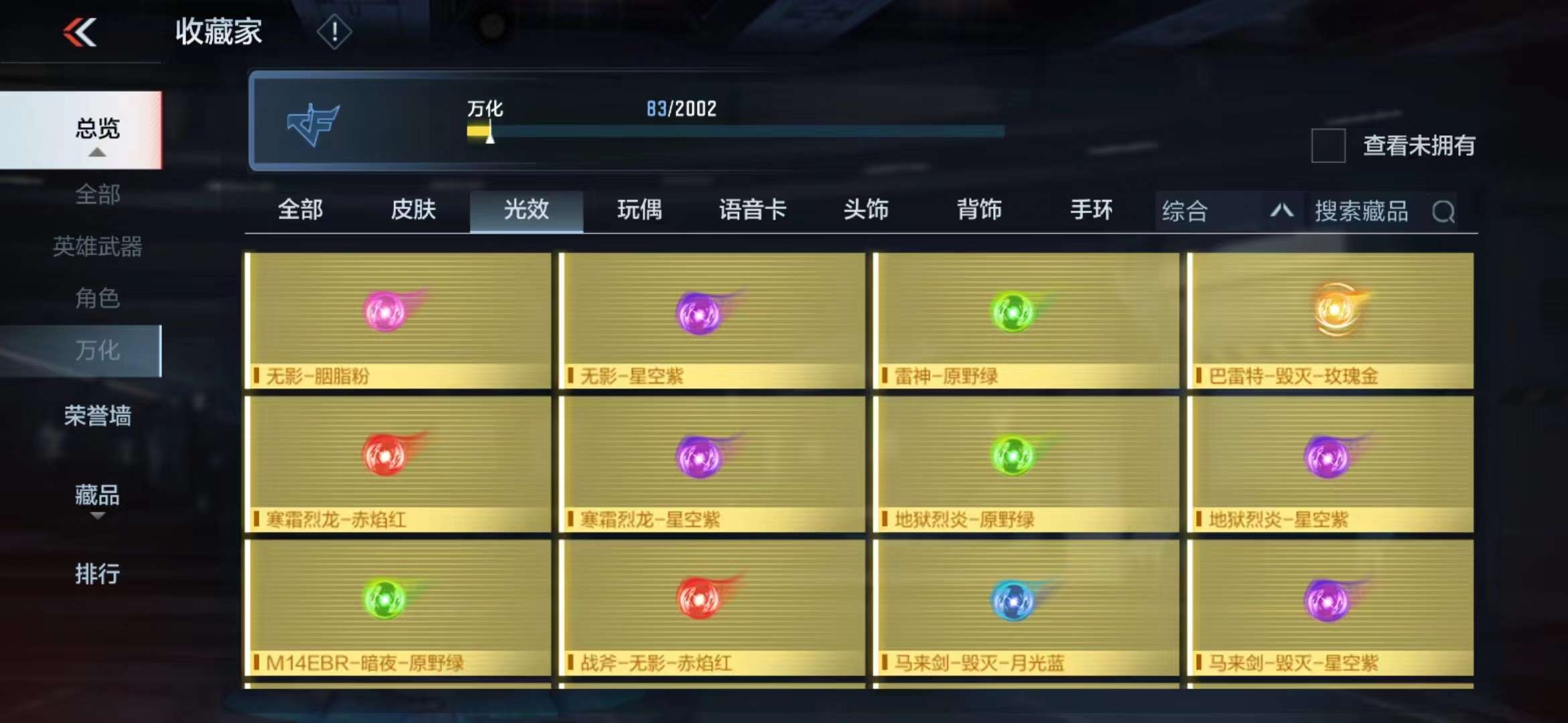 V6-30V-92级|王者之武|81式阿波罗 | AK47-木兰 | AK47-无影 荣耀酷本 | 47-机械纪元 | M4A1-玫瑰精灵 | AN94-四凶觉醒 | 巴雷特-极光 千变 | 加特林-堡垒 | 嗜血金鲨 | 地狱烈炎 | 改装GLOCK-木兰 | 角色 | 复仇者 | 零 | 曼陀罗09 | 职场灵狐 | 龙妹 | 幻影 | 斯薇特 | 幽灵刀锋 | 音效卡 | 现代战场 | 消灭音效 | 狙击枪线 |