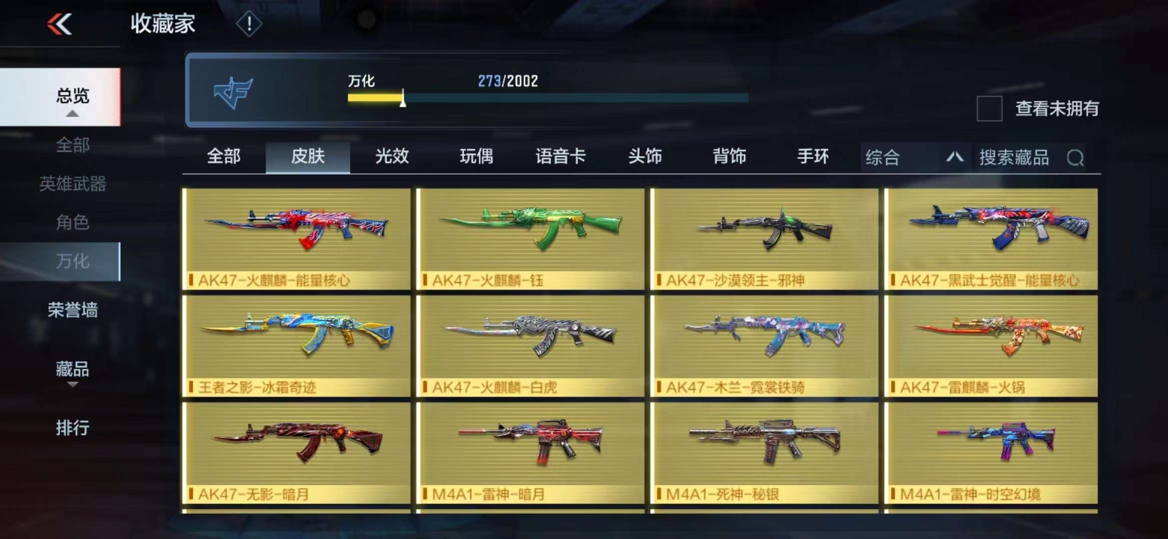 5王者/王影-冰皮/王心/王怒/王击/游骑兵/cop/81-阿波罗/V8-185V-150级 | 5王者 | 王者之影 冰霜奇迹 | 王者之心 | 王者之怒 | 王者之击 | M4A1-游骑兵 | COP | 81式 阿波罗 | QCW05-变形金刚 大黄蜂 | M4A1-黑骑士 纸片 | AK47-无影 暗月 | AK47-黑武士觉醒 能量核心 | AK47-沙漠领主 | AK47-雷麒麟 火锅 | AK47-木兰 霓裳铁骑 | M4A1-雷神 星空 | M4A1-死神 不屈老兵 | M4A1-樱龙-超觉 | M4A1-千变 随变 | 巴雷特-毁灭 寒霜 | 巴雷特-极光 重型机甲 | 5-机械纪元 蚀刻战甲 | 地狱烈炎 | 沙鹰-修罗 不屈老兵 | 马来剑-毁灭 不屈老兵 | 角色 | 幻影 | 樱 | 关小雨 | 审判者 | 堕天使 | 赛丝 | 复仇者 | 龙妹 | 麻雀 | 蜀雪 | 木兰 | 五号兵器N22 | 灵动武士 | 幻影 | 孙悟空 | 幽灵刀锋 | 周年庆纪念赛斯 | 音效卡 | 现代战场 | 消灭音效 |