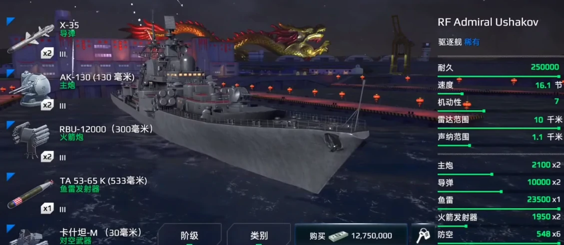 这种舰种以多维度火力覆盖出名,它配备了反舰导弹阵列和大口径主炮,形成双重压制体系,水下还有鱼雷发射单元,可以执行战术封锁。不过得注意,它的舰体结构比较庞大,得依靠地形来躲避集火,建议搭配机动型护航编队一起使用。