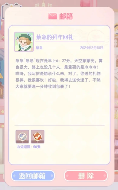 节庆活动他送限定纪念品,系统邮件发节日礼盒,有烟花和红包。实用价值一般,但集全套激活隐藏成就,注意查收奖励。