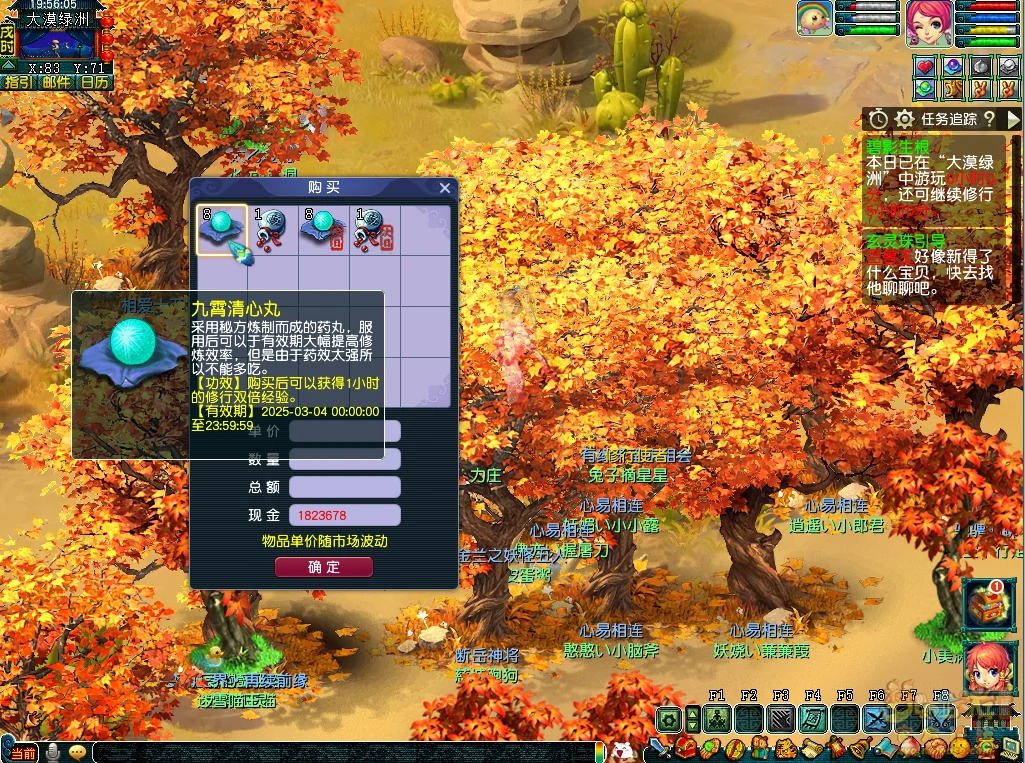3. 每日能在昆仑仙处买九霄清心丸与天机培元丹提升收益,此奖励机制独立于双倍/精修加成系统。