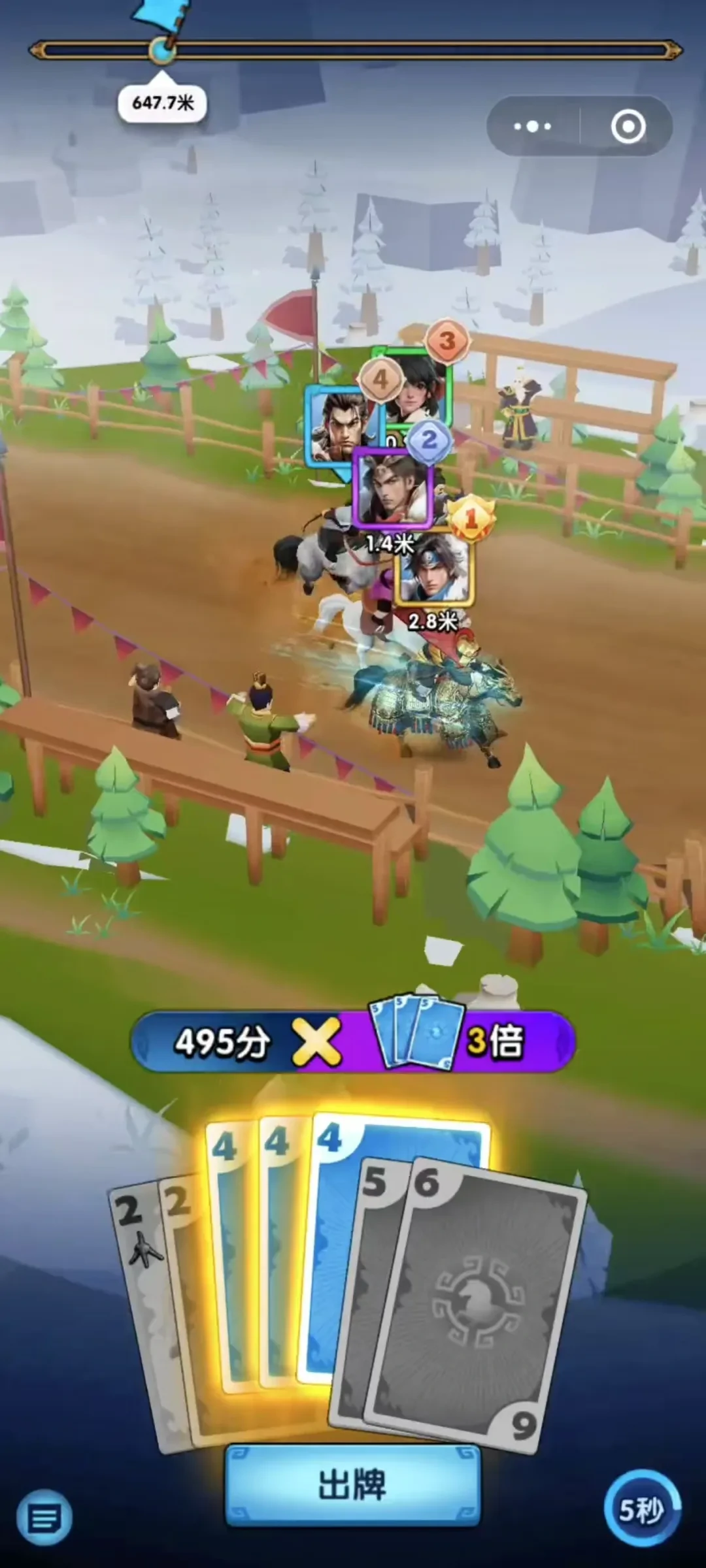 2. 马匹分上中下三等,手牌上限9/8/7张。按初始手牌选马:优质手牌选中等马保二争一,普通手牌选上等马争冠,较差手牌试下等马保三争二。
