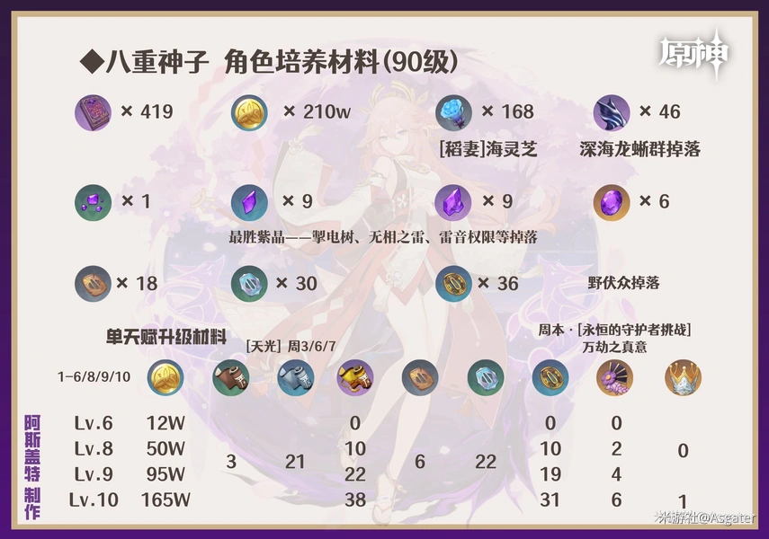 针对八重神子技能特性,优先将元素战技等级提升到8级以上。准备天赋升级材料,包括「天光」哲学系列典籍、狱火之蝶及智识之冕。收集角色突破材料,有雷霆数珠、血玉之枝与符纹之齿,符纹之齿可从层岩巨渊地区特定首领处获取。