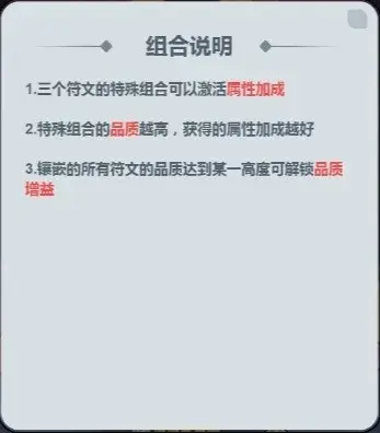 符文主要分为基础属性(像攻击、暴击、生命)和元素属性(冰、火、电、血、毒)这两大类别。要是装配三枚同属性的符文,就能激活套装增幅,不过实际的增幅数值会受到符文品质的影响。九孔全开的时候,品质增益是以最低品质的符文为基准的,所以建议大家尽量保持品质均衡。