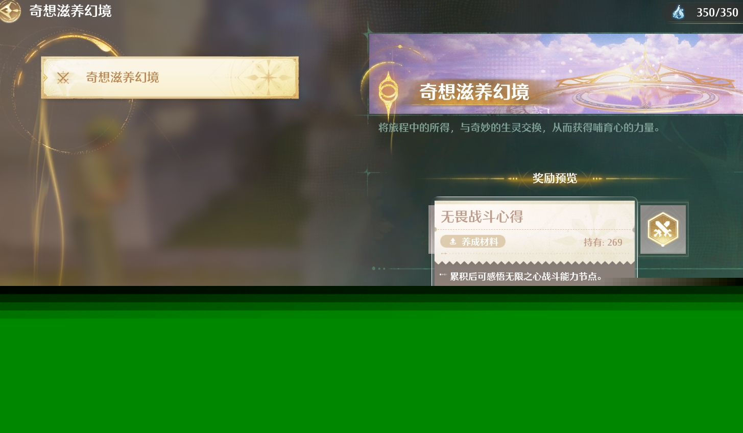 而奇想滋养幻境则是提升小伙伴们的能力,比如采集,捕虫,钓鱼,清洁,还有战斗,累计获取之后可以提升小伙伴们无限之星的能力节点,提升大家各方面能力。