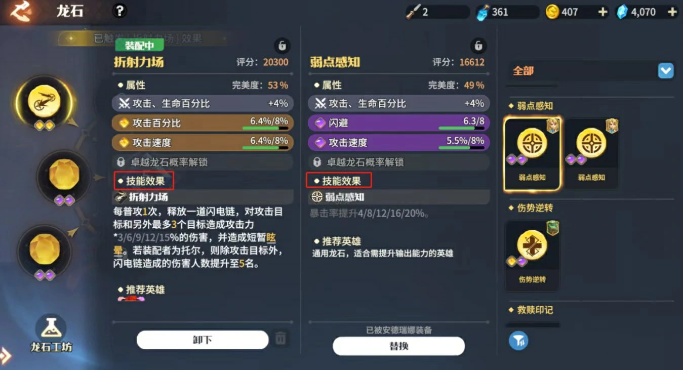 用强化材料提升插槽能级,影响龙石主属性倍率系数。多个龙石有相同特性,数值会叠加,要根据职业特性规划强化重点。消耗特定素材重置龙石属性词条,此操作有数值波动风险,储备充足资源再操作。