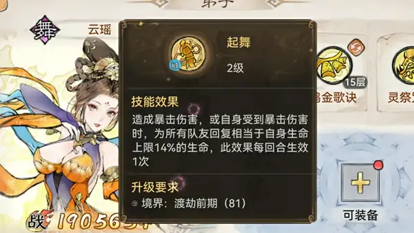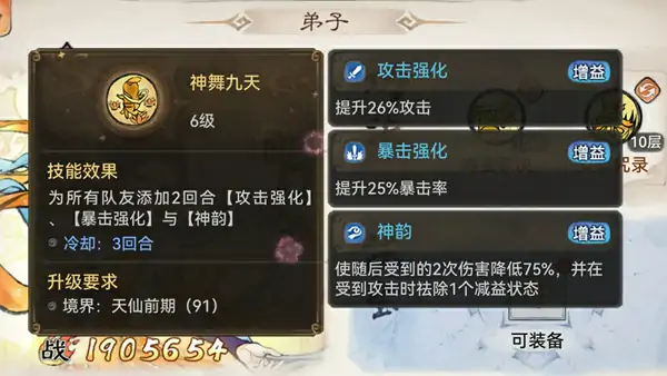 2、加点优先提升神舞九天和起舞技能,强化辅助效果。