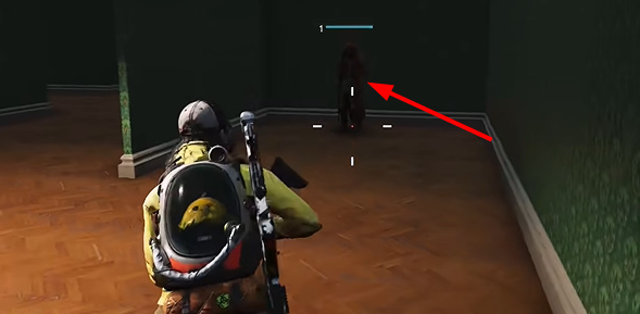 最后一个NPC,我们继续回到之前轮椅的位置。同样进入第三个门,进入后继续走到图片所示的墙边位置,可以无视追我们的怪物,它的速度很慢。再从墙的左边走到尽头,左转出来就可在一个小房间里面看到NPC了,最后我们便能完成任务。