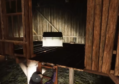 大家需要闯过这个花园房来到外面,之后一路往前走,走的过程中会在右手边看到一个房间,大家需要进入其中在里面可以拿到第一个箱子,拿到后需要穿过房间,来到房间背面。