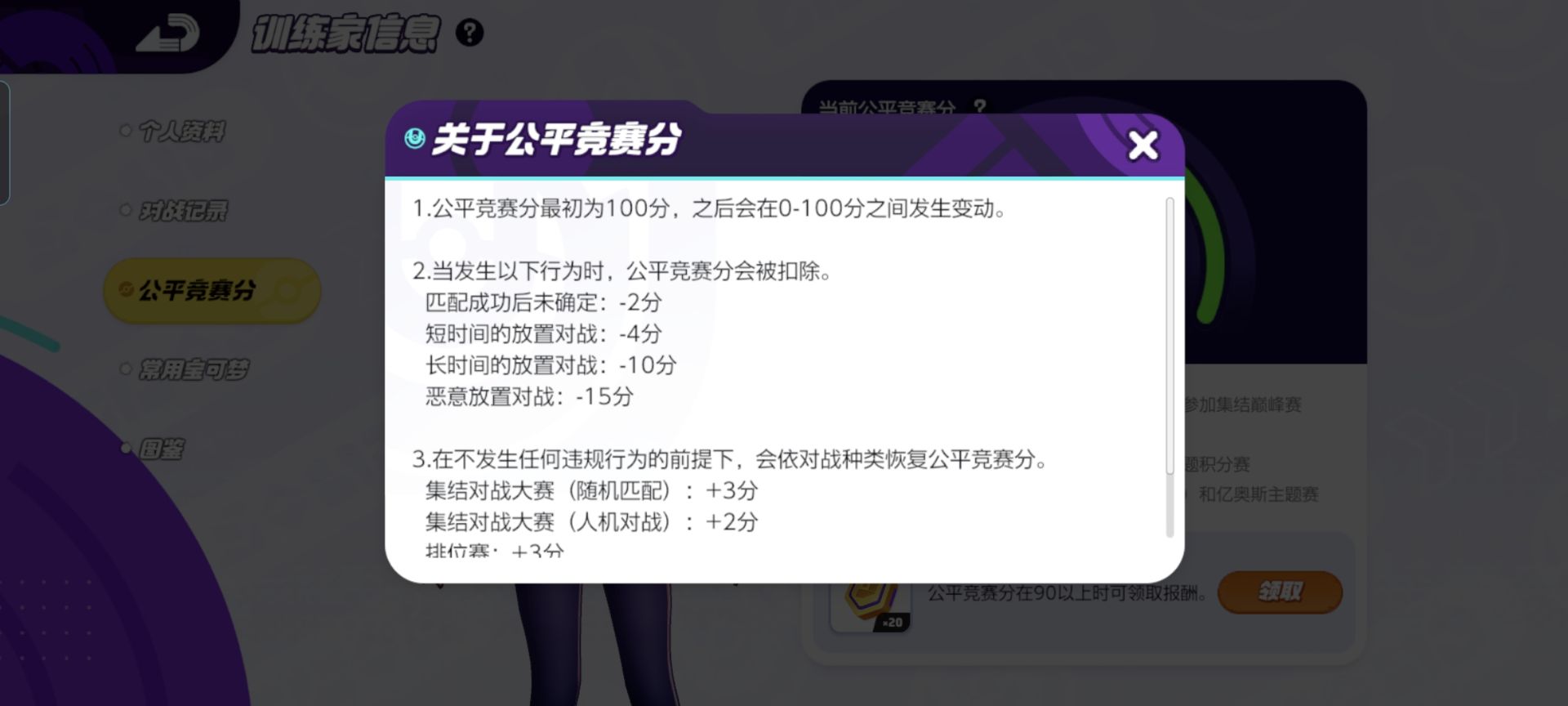 以上就是宝可梦大集结公平竞赛分的相关规则了,我们在了解了公平竞赛分的规则以后,还需要知道公平竞赛分还有着相关限制的,只有积分到了90分才可以得到相关奖励,如果积分没有80分的话,是没办法参加排名赛的。