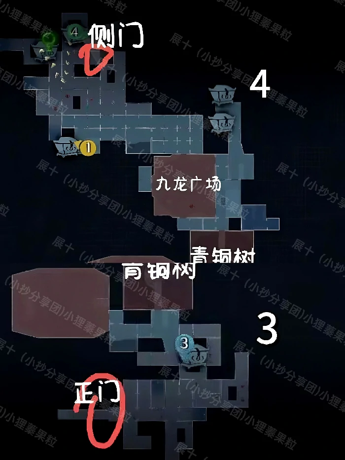 核心技巧:先锁定青铜树位置,再依据对应小抄推断棺材区域。别直接通过棺材图案反推,易误判!