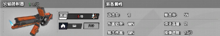 火焰喷射器:持续范围灼烧;品质效果为强化燃烧伤害,召唤天降火球。