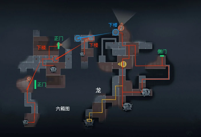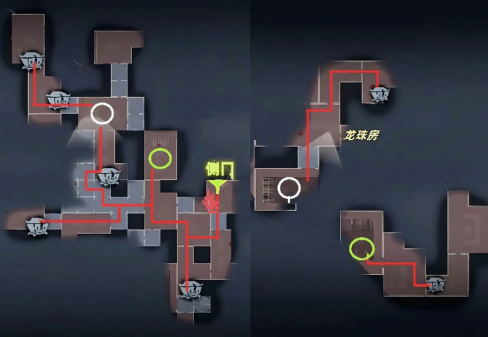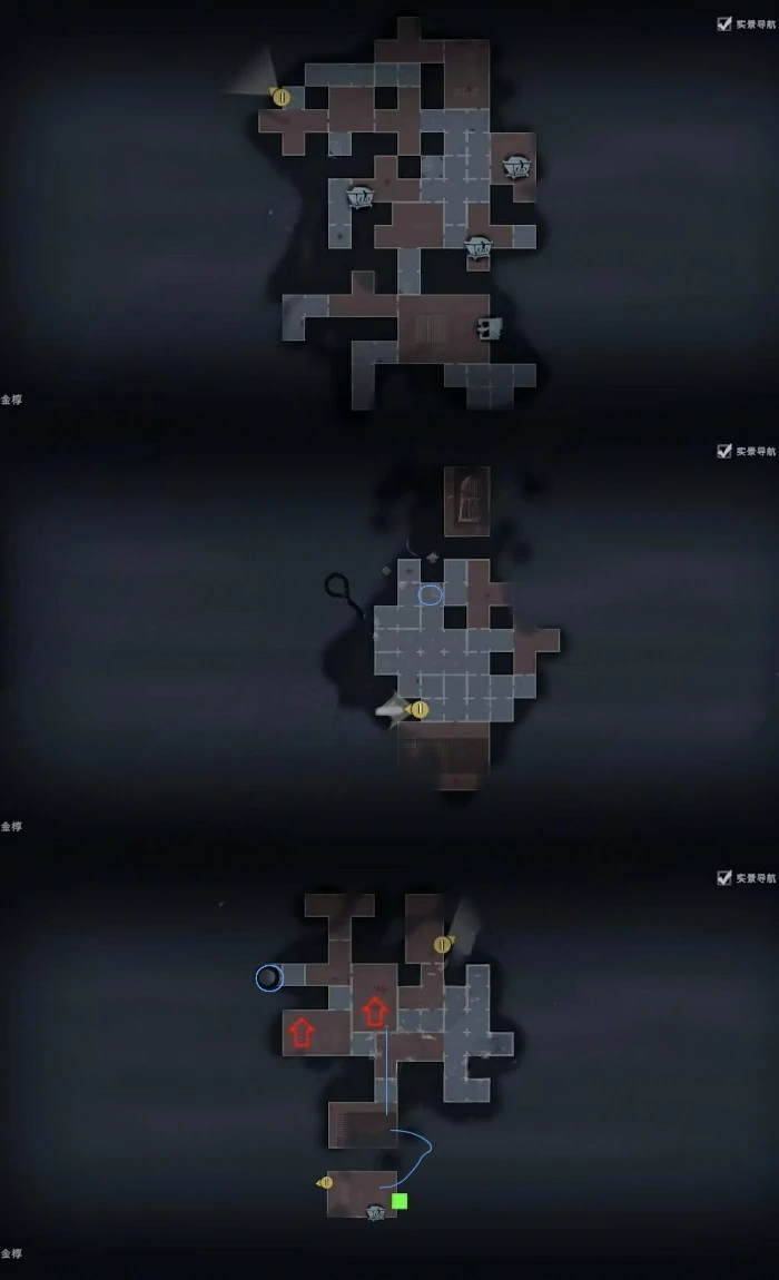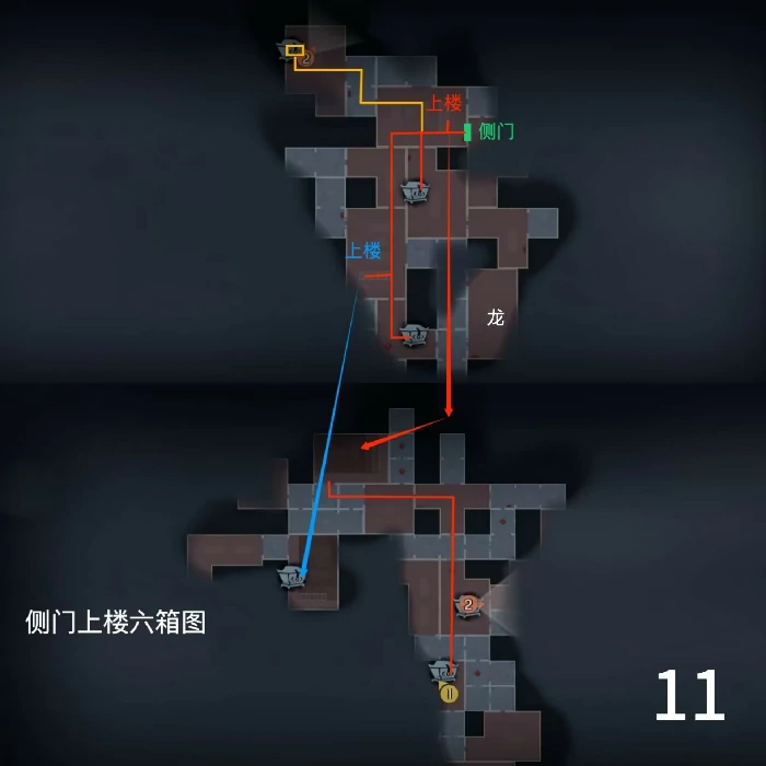 2.查看上部右侧+左下通道(白色标记)含下楼路径