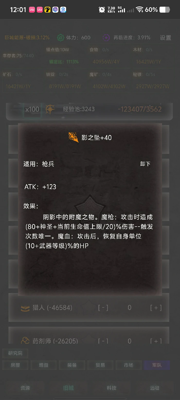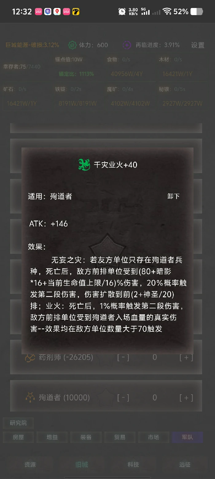 后期核心兵种:具备全队攻击加成与高效骸骨叠加能力。选魔能之刃武器,最大化攻击加成,提升当前血量增强其他兵种伤害;防具选索求铠甲积累骸骨资源,若无索求可不装防具,双生铠甲性价比低别用;属性优先选生命值和神圣属性,饰品选生命与神圣双属性。主要用于第四章和灾厄兵团收尾作战,前期少培养,后期特殊关卡仍需培养。