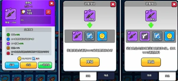 注:装备可无损降级回收材料,初期别纠结装备选择。
