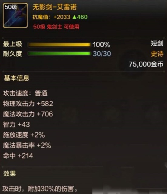 阿修罗武器的挑选那可是头等大事了。作为一个魔法输出职业来说,选择合适的武器会直接影响输出天花板。诸多武器之中,【无影剑-艾雷诺】无疑是实至名归的第一选择。这柄剑的属性面板之高令人震惊,同时还带有30%的伤害提升。不要轻视这30%的优势,在真实的战斗场景中,它能为你在击败怪物时增添额外的力量。尽管还有别的武器可供选择,但是面对伤害,剑简直是不可取代的。无论是刷图或者玩BOSS,【无影剑-艾雷诺】都可以使你的输出发生爆炸,绝对毕业武器。