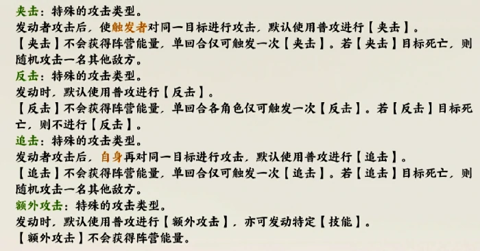 额外攻击说明:用基础攻击或特定技能发动,不产生阵营能量。