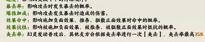 夹击系统:幻灵普攻后,队友有概率协同攻击,最高35%。