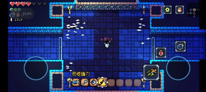 选择推荐装备组合:武器选灵魂镰刀(旧镰刀升级版);防具选霜堡戒指、磷木护胸、磷丝兜帽;徽章选交换血液、强韧灵魂、蓝色丝带。这套配置提供强大防御加成,但禁用治疗瓶。击败BOSS获巨石碎片。