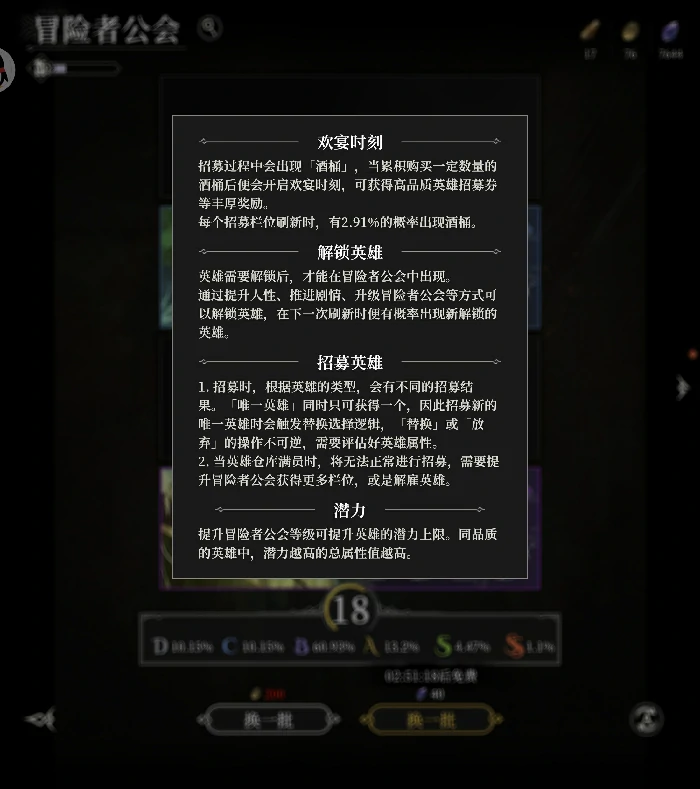 1. 别过早用大量金币酒馆招募!英雄潜力和酒馆等级有关,先提升酒馆等级,再高级招募,高效获优质英雄。(前期金币宝贵,勿浪费在低效招募)