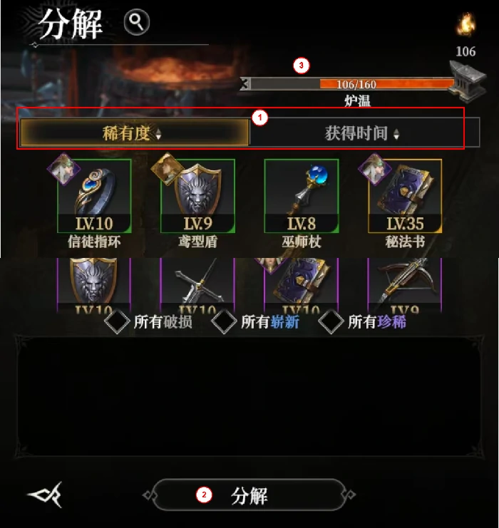 装备制造核心建筑,分解装备获炉温,160点激活高温锻造,锻造等级影响装备基础属性,建筑等级决定可制作装备品质。