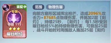 说明关键机制:释放特定技能可回满核心神通能量,后续技能不耗能量持续叠加阳灼效果。虽降低部分伤害,但不影响主要输出。