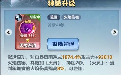 主动神通“荡陨灭尽”伤害随阳灼层数提升而增强,是元婴期后凌霄核心输出技能。战斗开始,配合核心神通自带25层阳灼效果,该技能按基础伤害×层数×140%计算,有巨额伤害加成,爆发惊人。