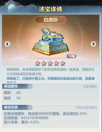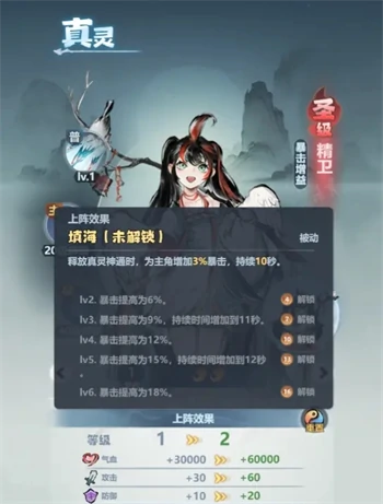注意:真灵上阵并达到指定等级解锁被动效果,才有暴击加成。