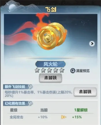 用仙剑令在冲刺商店兑换风火轮,使用飞剑技能时每秒提升1%暴击率。