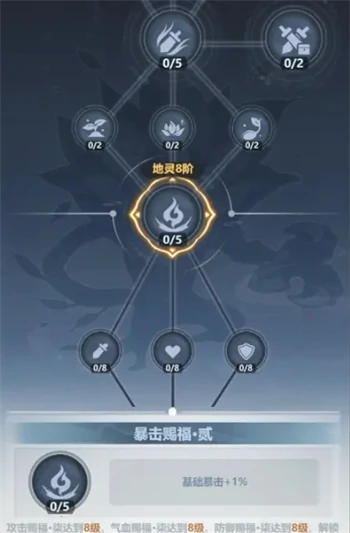 地灵培养到3阶和8阶,解锁基础暴击属性加成。