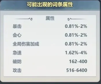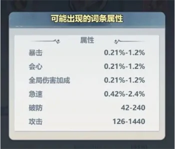 暴击概率(简称暴击率):表示攻击触发暴击的可能性。游戏不区分普通攻击暴击和技能暴击,暴击适合所有职业重点培养。