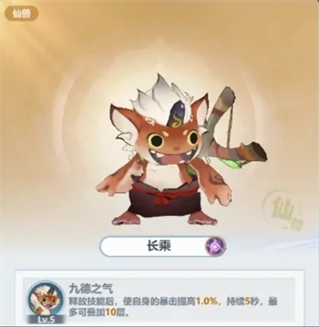 培养长乘(仙兽),技能触发后提升暴击率,最高叠加10层。