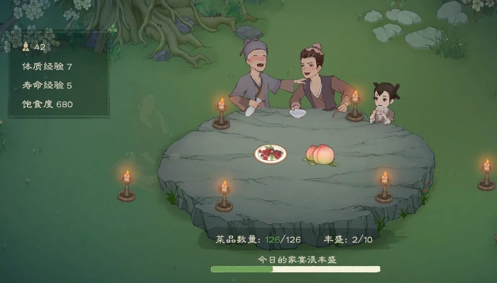 提升属性:通过家宴和不死树提升居民属性,保证饮食质量和居住环境,提高劳动效率。