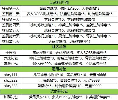 shzy111:兑换凡阶尊者赠礼10份、黄阶灵珠10个、灵玉6666个