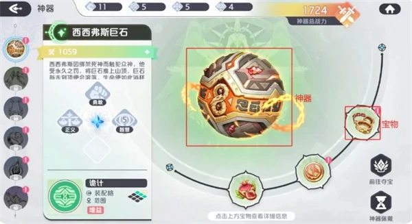 神器整合关联宝物属性加成,提升主角战力。已激活神器都为主角提供加成,解锁数量越多,总加成越显著。