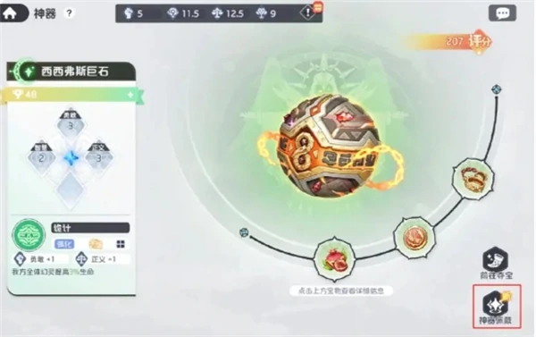 完成主线关卡 4 - 12 后,神器系统正式开放,它能为主角和队伍提供属性加成与特殊效果。