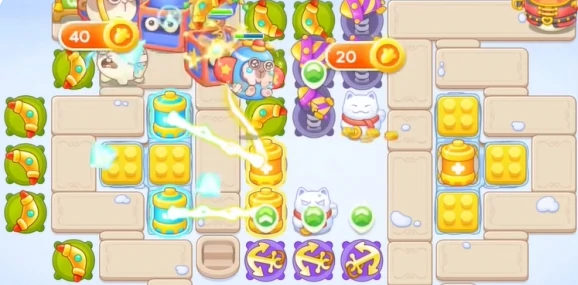 2. 开局在地图下方放俩船锚并速升级,顶部建个回旋镖。