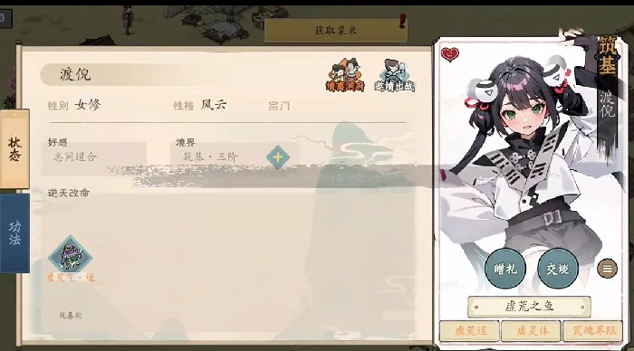 提升好感度道具:蕴含灵气的丹药(荒古聚灵丹)、特制折扇