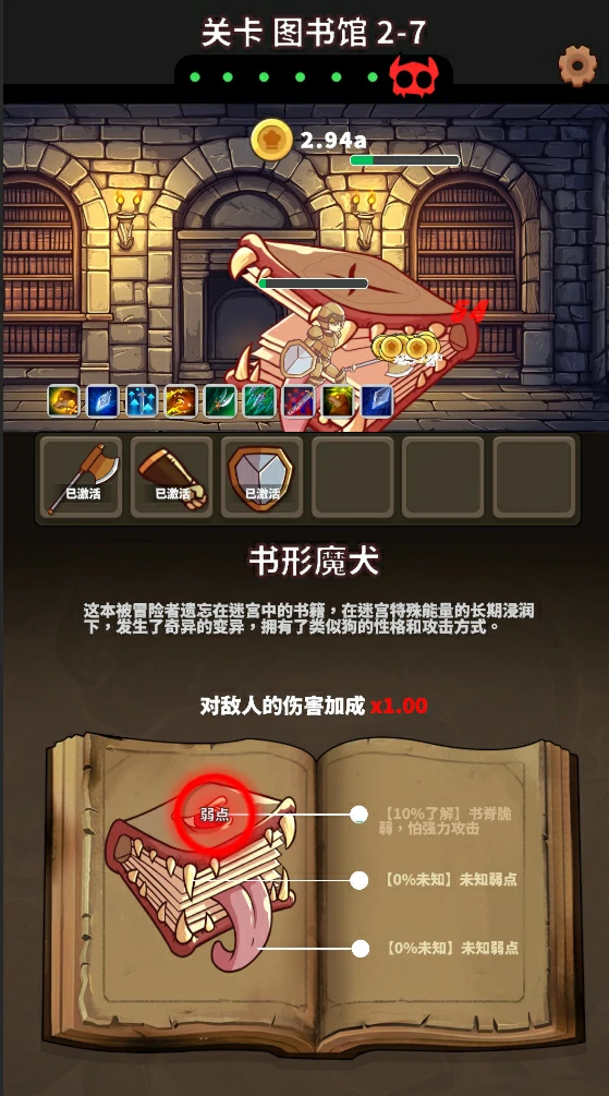 累积熟悉度:每次弱点激活(无论是否点击)增加5%熟悉度,满100%后该类型怪物弱点自动触发,无需手动点击。