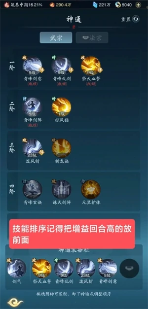 技能排列,将增益久或等级高的技能放前,战斗更快生效。