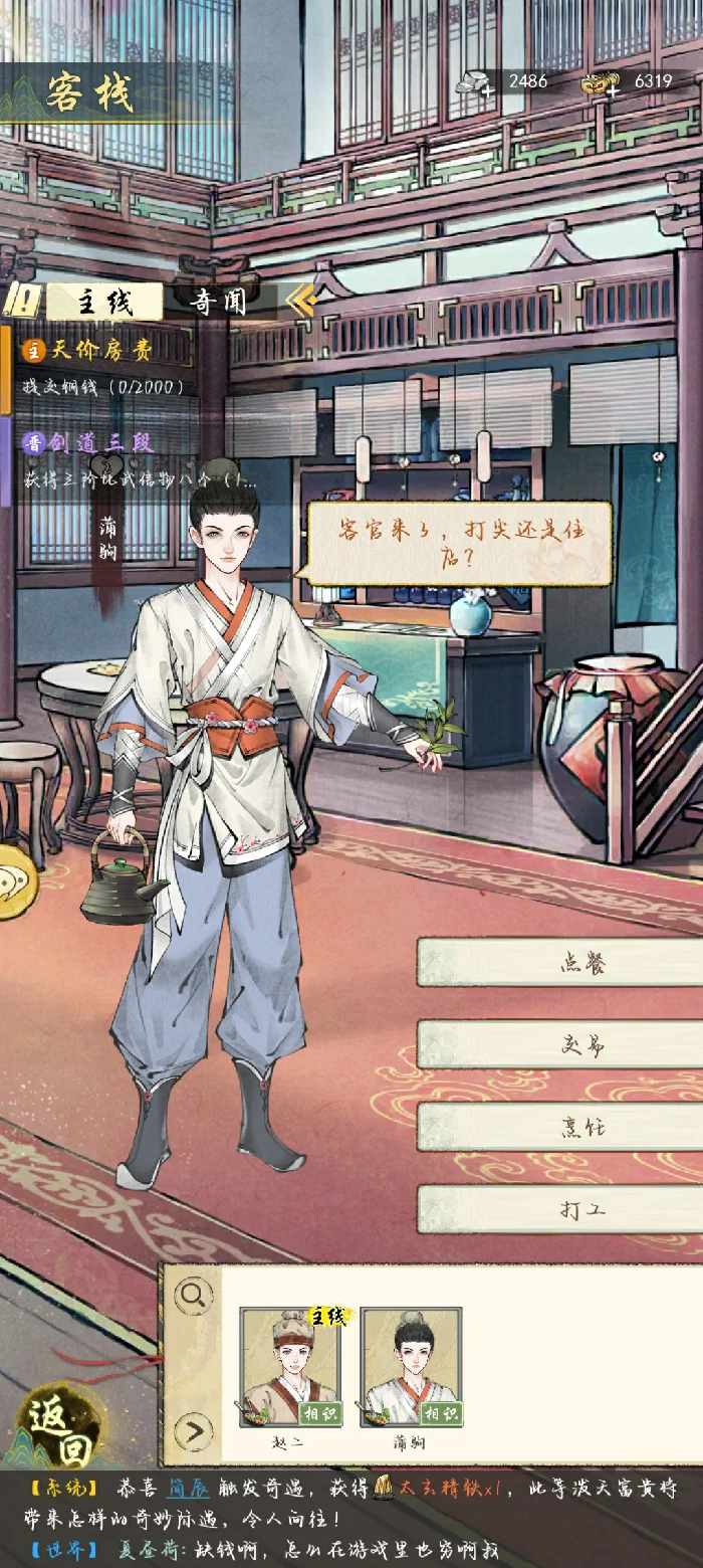 还能和各地商人交易,他们卖食材、菜品,有增加亲密度的礼物,甚至功法。在建邺地区,和集中的商人互动,购买物品提升好感,好感达“熟悉”等级,可随机获碎石、铜钱、淬体草等奖励。