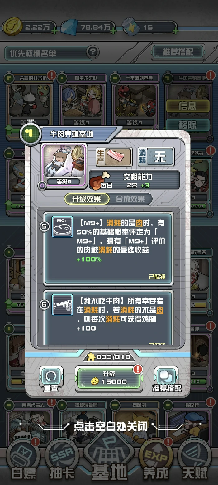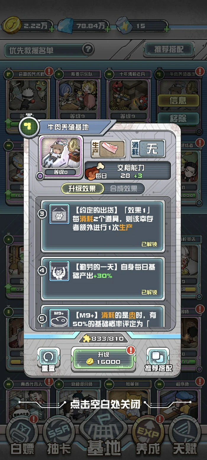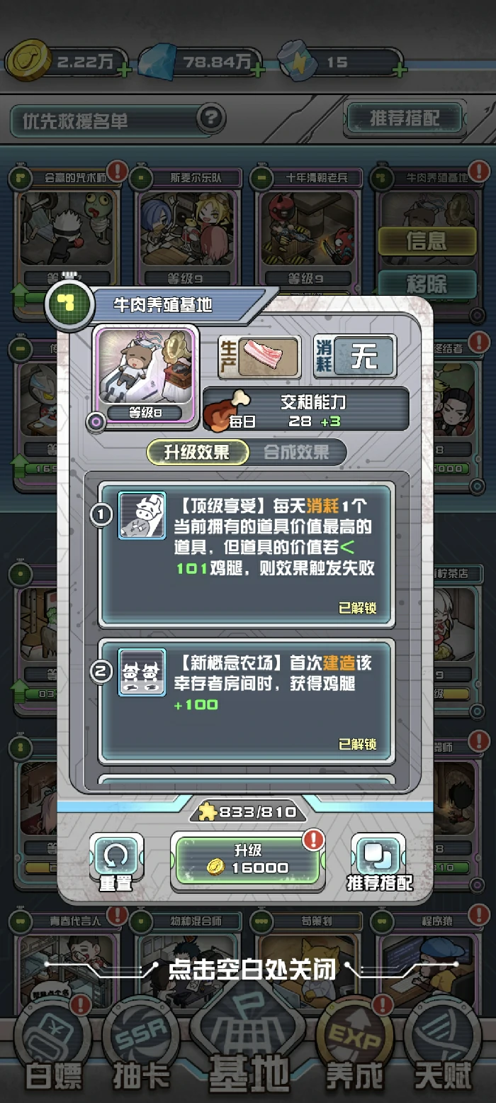 1. 高星级牛卡产肉数量和一星牛一样,别盲目合成高星,多铺开一星牛来提高总产出。