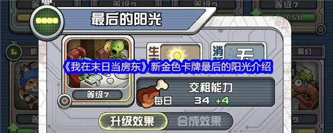 末日来临,别全往前线冲,试试当精打细算的房东!下面介绍游戏新金色卡牌“最后的阳光”。