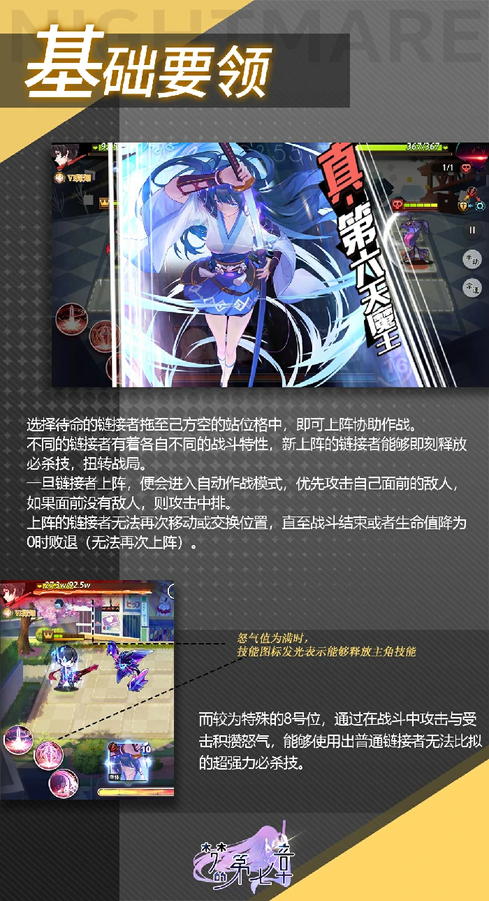 汇聚中日顶尖画师与豪华配音,重温梦境感动,开启沉浸式剧情!伙伴有人设和立绘,搭配动态效果,打造视觉盛宴!下面带来梦的第七章基础战斗指引,助你快速上手,对抗梦魇!